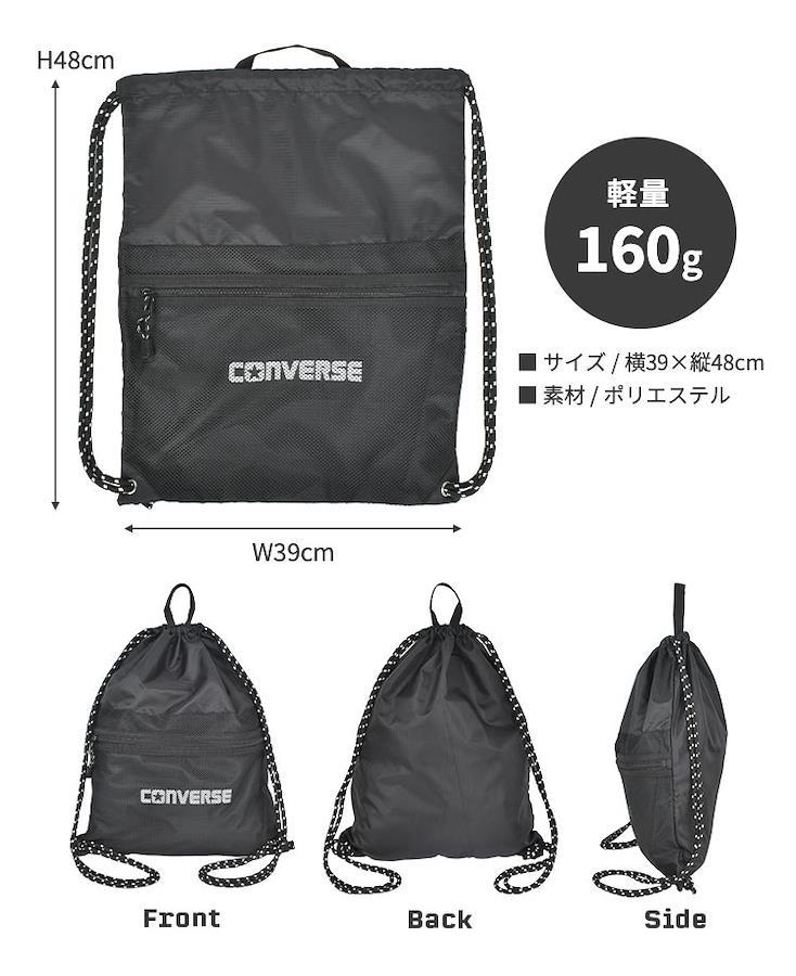【メッシュナップサック】人気のスポーツブランド『converse』のナップサックが登場!前面には便利なメッシュポケットが付いています◎軽くて丈夫なポリエステル素材で、大人も子供も使えるシンプルなデザイン。通学や部活にはもちろん、フェスやジム通いなど様々なシーンで活躍してくれます。