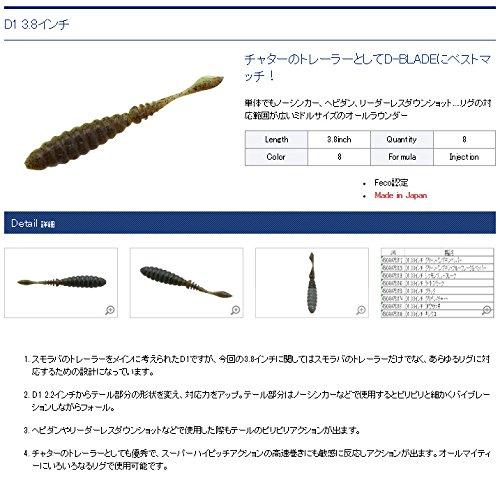 アングラーが発信するロッドワーク(シェイキング)に対し忠実かつ敏感にボディーが反応し、シェイクの強さによってアクションの強弱も変化させることが出来る。また、ただ引き時には自発的アクションも誘発し、あらゆる状況下のスレたバスにも口を使わせる。ベイトフィッシュをメインにイミテート。スモラバのトレーラーをメインに様々なリグに対応する。Feco対応。味とニオイのフォーミュラ入り。