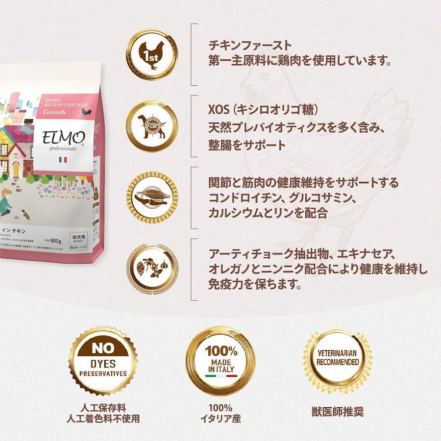 ■育ち盛りの仔犬たちに丁度いいバランスを研究して開発されたプレミアムドッグフードです。イタリア産の香ばしいチキンフレーバーで仔犬たちが食べる喜びを学んでくれます。■鶏肉を主な原材料とし、成長期の骨格形成に重要な、関節や筋肉などの成長を促すコンドロイチン・グルコサミン・カルシウム・リンを配合。良質なタンパク質と脂質の栄養バランスに配慮して成長と健康をサポートします。 ■豊富なビタミンで本来の抵抗力を維持。 ■必須脂肪酸であるオメガ6を7%・オメガ3を0.7%含む事により、美しい毛艶や健康な皮膚に貢献します。 ■豊富な食物繊維を配合することにより、整腸作用に配慮しています。