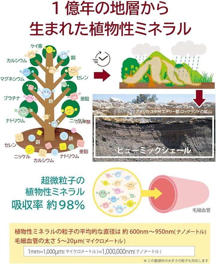 「天然ミネラル70種類以上」アメリカ・ユタ州の太古の地層「ヒューミックシェール」由来の植物性ミネラルを使用。