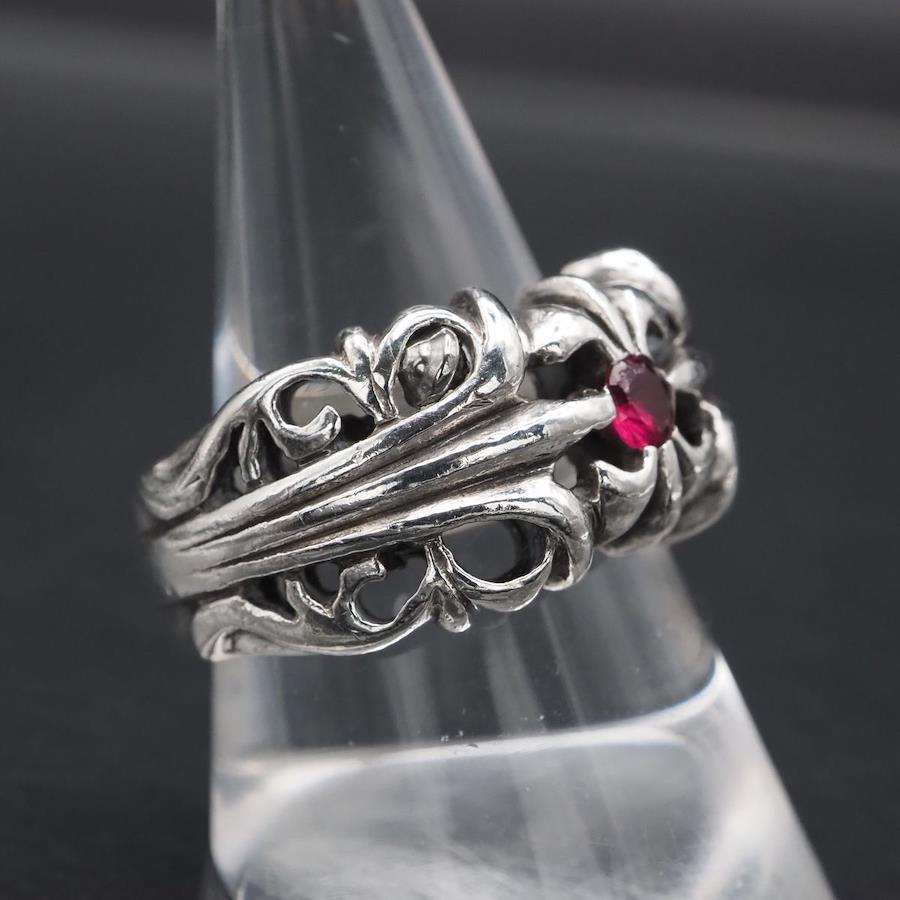 かすれていますが、おそらく925の刻印だと思います。簡易的なテスターで確認し、ルビーの反応が出ましたが、スピネルの可能性もあります。画像をたくさん掲載しておりますのでそちらでご確認とご判断をお願いいたします。