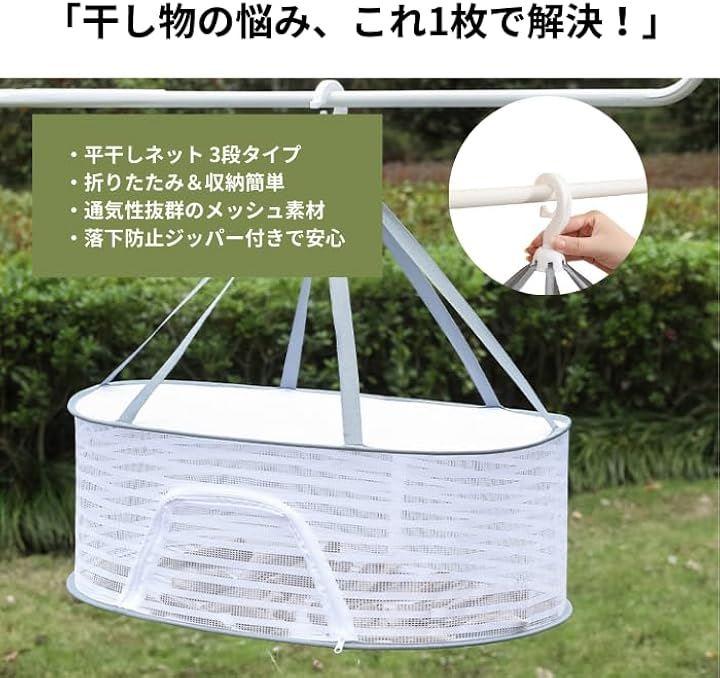 毎日の家事を効率化する便利アイテム:速乾・通気・折りたたみ・虫除けなど、乾燥に必要な機能をすべて備えた、家庭に1つあると便利な収納ネットです。