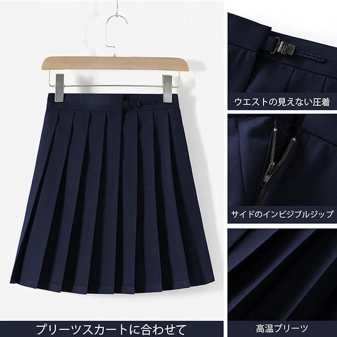 【3点セット】セット内容:白シャツ+紺色スカート+紺色蝶結びが含まれています。長袖と半袖があり、春・夏・秋に着用できます。フルセットでお得です。前開き式は着脱が簡単です。本格の女子高生制服、jkコスプレに最適です!スカートはプリーツスカートで、可愛くて、美脚効果も抜群です。