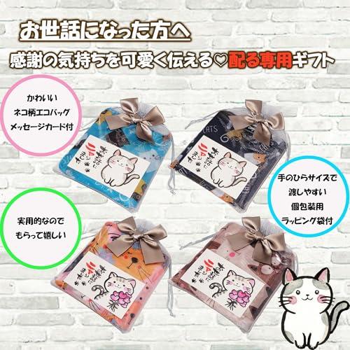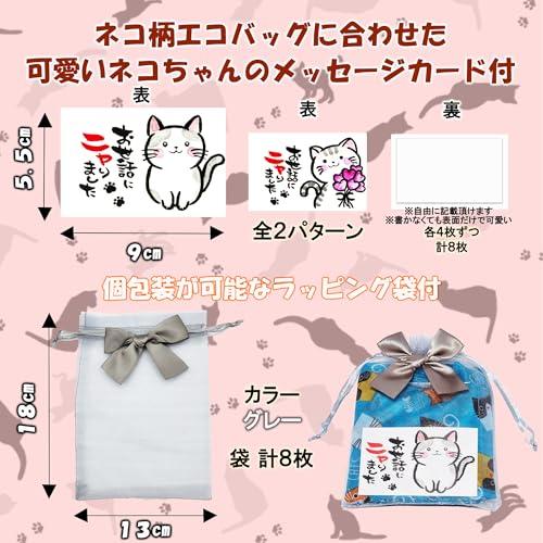 【内容量】 ・エコバッグ 4種×2 計8個 (広げ時サイズ46㎝×60cm×マチ8cm) (収納時サイズ11㎝×12cm) 重量28g 素材 ポリエステル ・ラッピング袋 1色×8 計8枚 サイズ13㎝×18cm ・メッセージカード 2種×4 計8枚 サイズ9㎝×5.5cm 【梱包サイズ】 25.5cm×23cm×3cm 【総重量】 全体重さ250g 【ちょっとしたご挨拶用のプチギフトとして】退職、退院、異動、引っ越しなどのプチギフトとしてオススメです。手のひらサイズで渡しやすく「ありがとう」、「可愛い」と、自然に会話が生まれるような商品づくりをコンセプトにしているプチギフトです。 【かわいくて実用的】ネコ柄のエコバッグ&メッセージカードは感謝の気持ちを可愛く伝えることが出来ます。尚且つ実用的なので贈る側もお手軽に、受け取る側も、もらって嬉しい、理想的なプチギフトです。 【高性能】撥水加工で洗濯OK、丈夫でシワになりにくい「ポリエステル」生地使用。最大荷重12kg。エコバッグ自体に収納袋付で収納袋が紛失する恐れはございません。持ち運びに便利なコンパクトサイズ。さまざまなシチュエーションで活用出来ます。 【特別感】エコバッグ4種、ラッピング袋1色、メッセージカード2種、バリエーション豊富でさまざまな組み合わせが可能です。 お渡しする1人ひとりに特別感を演出可能です。?【内容量】 ・エコバッグ 4種×2 計8個 (広げ時サイズ46㎝×60cm×マチ8cm) (収納時サイズ11㎝×12cm) 重量28g 素材 ポリエステル ・ラッピング袋 1色×8 計8枚 サイズ13㎝×18cm ・メッセージカード 2種×4 計8枚 サイズ9㎝×5.5cm?【ちょっとしたご挨拶用のプチギフトとして】退職、退院、異動、引っ越しなどのプチギフトとしてオススメです。手のひらサイズで渡しやすく「ありがとう」、「可愛い」と、自然に会話が生まれるような商品づくりをコンセプトにしているプチギフトです。?【かわいくて実用的】ネコ柄のエコバッグ&メッセージカードは感謝の気持ちを可愛く伝えることが出来ます。尚且つ実用的なので贈る側もお手軽に、受け取る側も、もらって嬉しい、理想的なプチギフトです。?【高性能】撥水加工で洗濯OK、丈夫でシワになりにくい「ポリエステル」生地使用。最大荷重12kg。エコバッグ自体に収納袋付で収納袋が紛失する恐れはございません。持ち運びに便利なコンパクトサイズ。さまざまなシチュエーションで活用出来ます。?【特別感】エコバッグ4種、ラッピング袋1色、メッセージカード2種、バリエーション豊富でさまざまな組み合わせが可能です。 お渡しする1人ひとりに特別感を演出可能です。原産国 中国