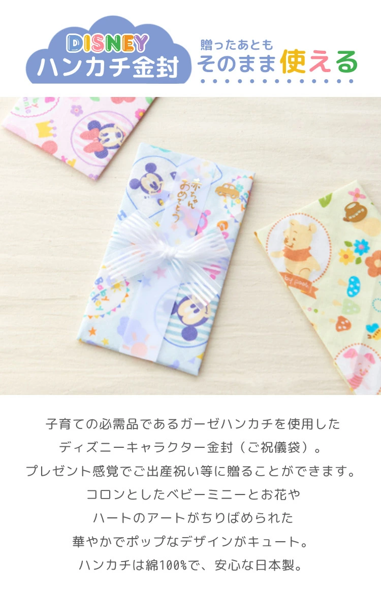 【ガーゼハンカチ金封】お祝いを包んで贈った後もガーゼハンカチとして使える金封。安心の日本製でかわいいカラフルな柄。贈る側も、もらう側もうれしい一品。大切な赤ちゃんへの初めての贈り物に是非オススメです。