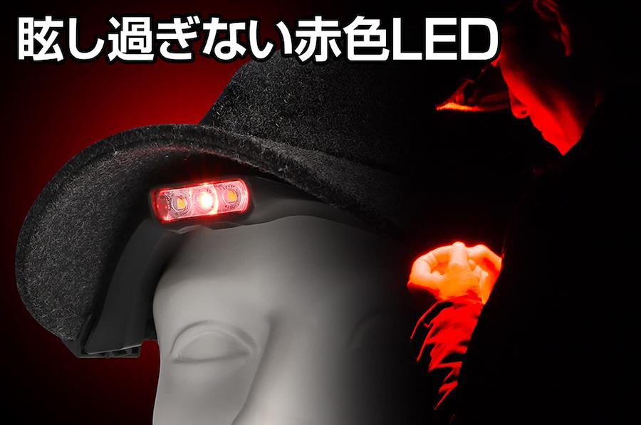 赤色LED暗い場所で手元を照らすなど、メインLEDでは明るすぎる際に便利