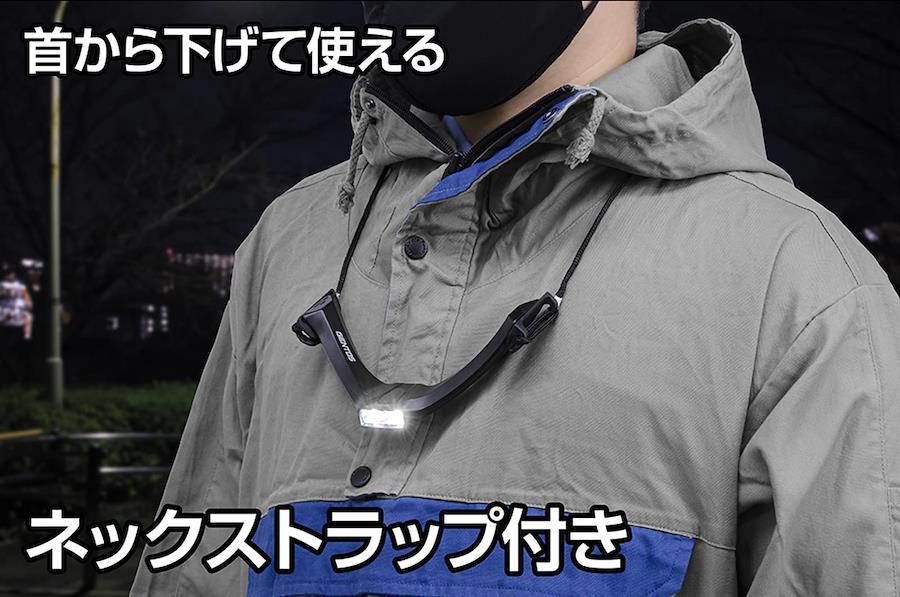 帽子にはさんで使うUSB充電式ヘッドライトキャップライト / ネックライトの2WAYで使える