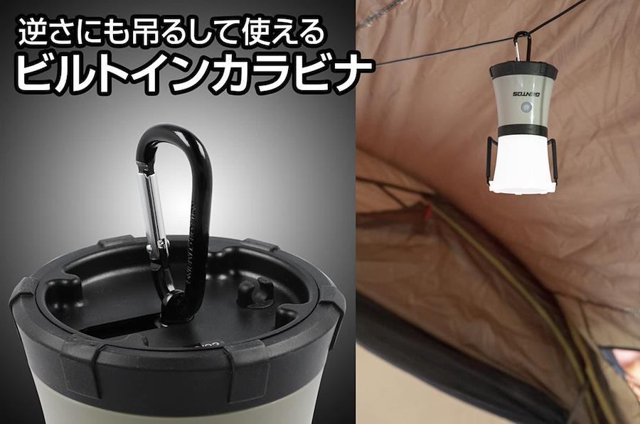 【ビルトインカラビナ】逆さまに吊るして使用可能