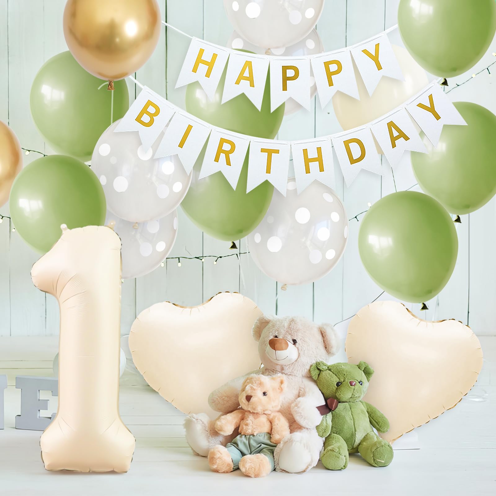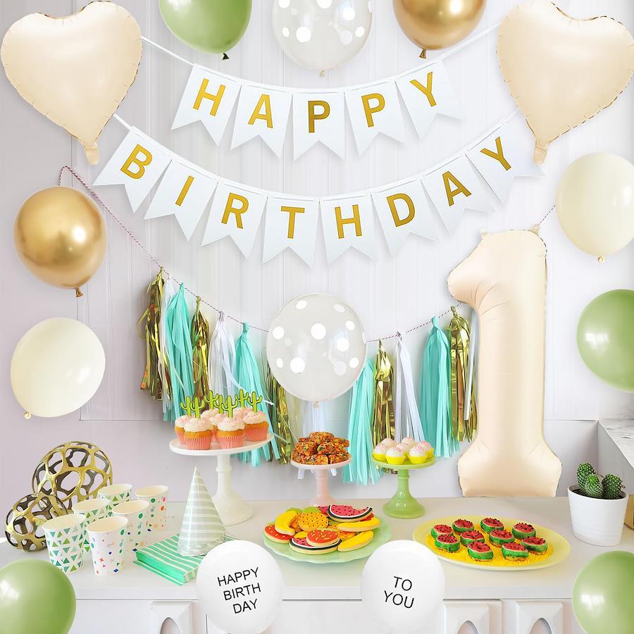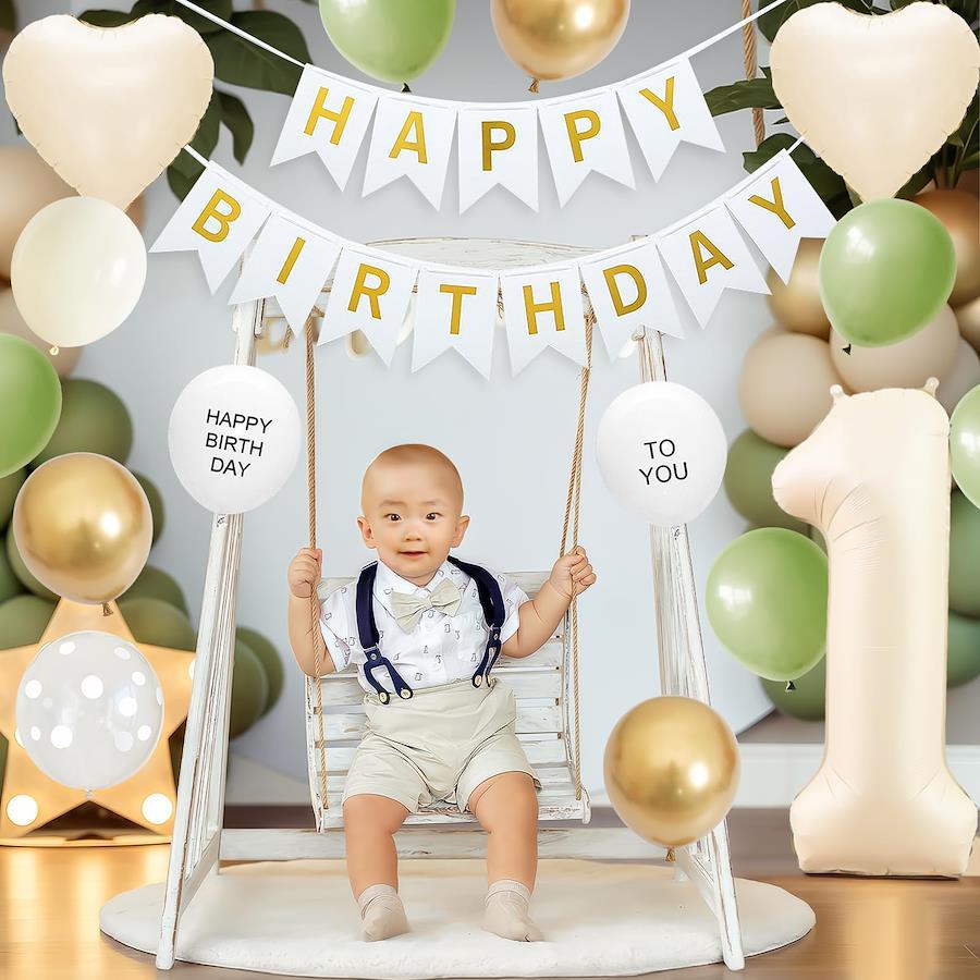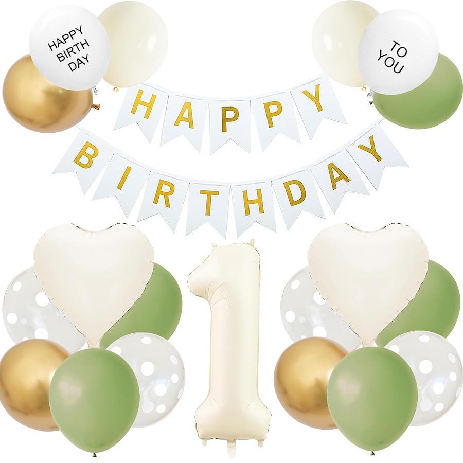 GRESATEK×アボカドグリーンバルーン:くすみホワイトとアボカドグリーンのカラーがお洒落でスタイリッシュな雰囲気をお楽しみいただけるオリジナルセレクトのバルーンセットです。大きな数字バルーンが目を引くでどんな場所でも映えて、かわいい写真が撮れること間違いなし♪人気のナチュラルカラーのバルーンを壁に飾れば、お部屋がやわらかい雰囲気に仕上げます。セット内容(取り扱い:対象年齢6+以上):Happy Birthdayペーパーバナー1組 、ハート風船2個(約45cm)、32インチ数字風船×1個、「HAPPY BIRTHDAY」風船×1個、「TO YOU」風船×1個、ミルクホワイト風船×2個、アボカドグリーン風船×5個、ゴールド風船×3個、クリアドット風船×4)、ドットシール&ひもが付いております。様々な場面に適用:おうちやパーティールームでのお誕生日のお祝いの飾り付けや、記念写真の飾りにピッタリのアルファベットバルーンセッ トです。お店の飾りなどにも適用、簡単にパーティーの雰囲気を作り出せます。お誕生日の撮影に:ガーランドとお花のバルーンを中心に飾って、ほかのバルーンを床に並べたり、壁に貼り付けたり、浮かせたりすることで、一気におしゃれな空間になり、自宅でもお誕生日感を演出した写真撮影ができます♪男の子、女の子の出産祝い、100日お祝い、お食い初め、ハーフバースデー、1歳、2歳~9歳までの誕生日にぴったりです。【免責事項】メーカーによる商品リニューアルに伴いパッケージ(内容量も含む)変更が行われた場合、新パッケージでお届け致します事ご了承願います。