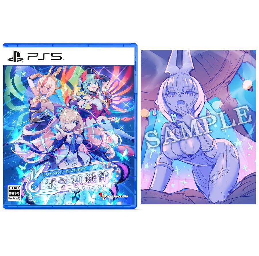 ■「GUNVOLT RECORDS 電子軌録律(読み:ガンヴォルト レコーズ サイクロニクル)」とは 「蒼き雷霆(アームドブルー) ガンヴォルト」シリーズに登場する歌姫、《電子の謡精(サイバーディーヴァ)》モルフォ(歌:櫻川めぐ)、RoRo(歌:峯田茉優)、それと《電子の踊精(サイバージーン)》ルクシア(歌:佐々木李子)が歌う楽曲を、リズムゲームとして楽しめる新規タイトルです。 パッケージ版は、ダウンロード版本体に内包される15曲と、第一期DLC(各4曲×全5種)として順次発売予定の20曲が最初からインストールされているため、全35曲を発売日からお楽しみ頂けるお得な仕様となっています。 プレイヤーは2つのカーソルを躍らせるように操作して、流れてくるノーツをリズムよく捌き、ハイスコアを目指します。 2つのスティックを使った動きは、3DCGで踊っているキャラとシンクロすることもあり、スティックを使ってダンスをしているようなリズムゲームを楽しむことができます。 ■セールスポイント① 歌姫と一緒に踊るように操作する新しいリズムゲーム! 画面上端から流れてくるノーツには、ボタンを押すタイプの「タップノーツ」「ホールドノーツ」と、カーソルを使うタイプの「フリックノーツ」「スライドノーツ」があります。 上下左右と斜めの8方向あるフリック、そして、弧を描くスライドは、スティック操作を活かした遊びとなっており、上手く捌けた時はモルフォ達の振り付けに合わせて一緒に踊っているような感覚が味わえます。 また、今作はコントローラによる操作に加え、Nintendo Switch版ではタッチ操作でもお楽しみ頂けます。 ■セールスポイント② 歌姫の歌声をフルコーラスで聴けるサウンドプレイヤーを搭載! 「蒼き雷霆(アームドブルー) ガンヴォルト」シリーズのゲーム内で使用された楽曲をはじめ、ファンディスク(CD)、OVAの劇中歌から厳選した35曲を、フルコーラスで聴くことができるサウンドプレイヤーを搭載しています。 リピート機能やプレイリスト作成機能も搭載されており、自分だけのお気に入りプレイリストを作成できます。 ■セールスポイント③ 魅力的な歌姫の美声がプレイヤーを魅了する! 《電子の謡精(サイバーディーヴァ)》モルフォ、RoRoに加え、《電子の踊精(サイバージーン)》ルクシアの3人の歌姫が可愛いモーションとフルボイスで登場します。 もしミスを重ねてゲームオーバーになってしまったとしても、歌姫たちがソングオブディーヴァでプレイに復帰させてくれるので、誰でも楽曲の最後までプレイできるサポート機能があります。 【出演】 《電子の謡精(サイバーディーヴァ)》モルフォ:櫻川めぐ 《電子の謡精(サイバーディーヴァ)》RoRo:峯田茉優 《電子の踊精(サイバージーン)》ルクシア:佐々木李子 ■セールスポイント④ 過去作のプレイ映像で歌姫と共にシリーズの軌跡を辿る! 歌姫たちのミュージックビデオを背景にプレイする以外にも、「蒼き雷霆(アームドブルー) ガンヴォルト」シリーズのプレイ映像を背景にプレイする事ができます。 プレイ映像は楽曲によって変化しますので、シリーズのファンは追体験を楽しめ、未プレイの場合はダイジェストで歌姫が登場する作品を知ることができます。