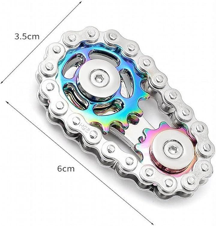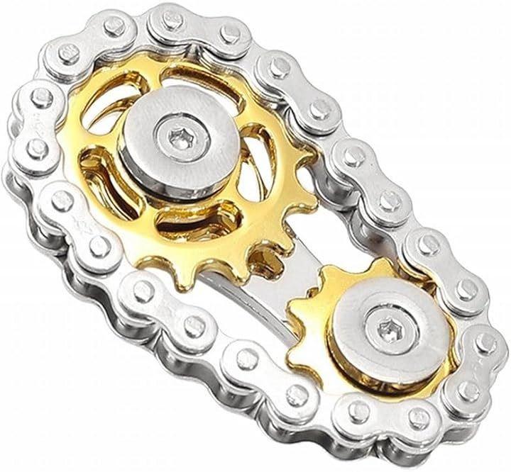 「独自のチェーンデザイン」バイクチェーンをモチーフにした2ギア構造で、見た目のインパクトと回転時のユニークな動きが楽しめる。