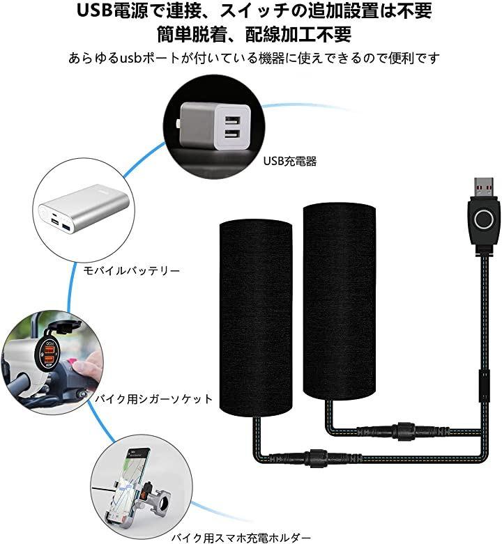 「乗る派」に必須アイテム。 グリップヒーター日々寒さが厳しくなっていくこの時季、お出かけのときはしっかり防寒することが大切ですバイク通勤やツーリングをする人にとって、特に凍えてしまう指先の防寒は大切じゃないでしょうかそこで、凍える手を暖めてくれる「heranグリップヒーター」で冬を乗り切ってみましょうこちらのグリップヒーターはUSB連接タイプで、モバイルバッテリーに連接すれば、バイクのバッテリーに負荷にならない