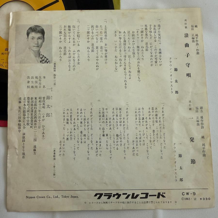 Ichisetsu Taro Showa Era Vintage EP Record Rokyoku Lullaby Ippatsubushi 7-inch Extended Play