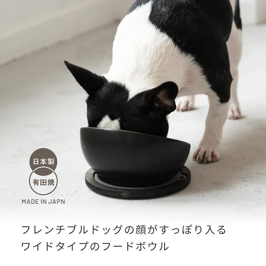 幅 155 × 奥行 177 × 高 97 mm 容量実用容量:150 ml フレンチブルドッグ専用本体:磁器 マット:シリコーンゴム 原産国 日本製顔がすっぽり入る形状。フレブルの顔がスッポリ入る ワイドタイプ。横に広く、手前が低い構造で、フードに近づきやすく、食べやすいです。こぼれにくい構造。フードがこぼれにくい「そり返し」があるので、最後の一口までキレイに食べられます。フレブル滑り止めマット!フレンチブルドッグ型の滑り止めマット付き。ボウルと合わせて使えば安定感がありかわいい!安心安全日本製。素材には有田焼を採用し、日本製で安心安全に使えます。また、電子レンジでフードを温めたり、食洗器で洗ったりしてもOKなので、とても便利でおすすめです。