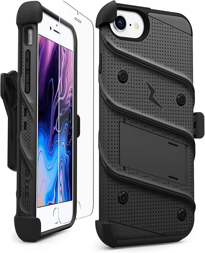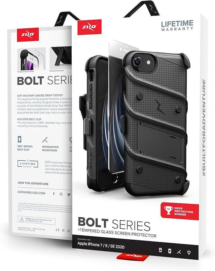 ブランド:Zizo (米国)、対応機種:AppleiPhone SE 第3世代(2022年発売) / 第2世代(2020年発売) / 8 / 7、商品内容:ケース本体、液晶保護ガラス、 各1pcs、注意:本ケースは2層構造ですが、分解しないで下さい。