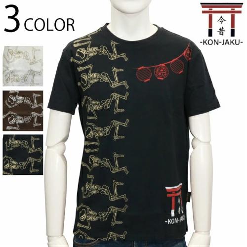 今昔-KON-JAKU- 狐の夏祭り 半袖Tシャツ (KJT-69001)Tシャツ 今昔狐 夏祭り 髑髏 プリント 3色展開