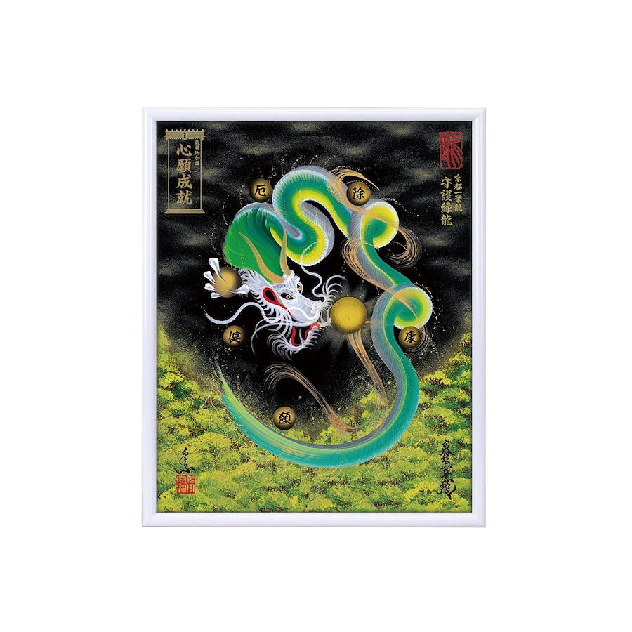 【商品の特徴】・京都一筆龍描画の種類/色彩は【26種】よりお選びいただけます<昇運龍14種(双龍5種/1体龍9種)> <守護龍10種(双龍2種/1体龍8種)> <縁結び龍2種(双龍2種)>・『京都一筆龍の御加護/御利益の象徴=胴体部分を一切途切れさせず一筆で描く動画』のQRコード印字ステッカー(2色/4サイズ)を同封お納めいたしております・描画に記載可能なお願い事は6種のご祈願内容より御選定いただけます心願成就/事業繁栄/金運上昇/健康祈願/家内安全/良縁成就・国内生産の高級額縁(デッサン額)を使用。額縁の色/機能は7種よりお選びいただけます。・龍の眼に光を宿し生気を吹き込む『龍の瞳(ラインストーン)』加工・京都一筆龍絵師手島啓輔署名、落款入り・御贈答のご利用も多く、懇切丁寧な包装
