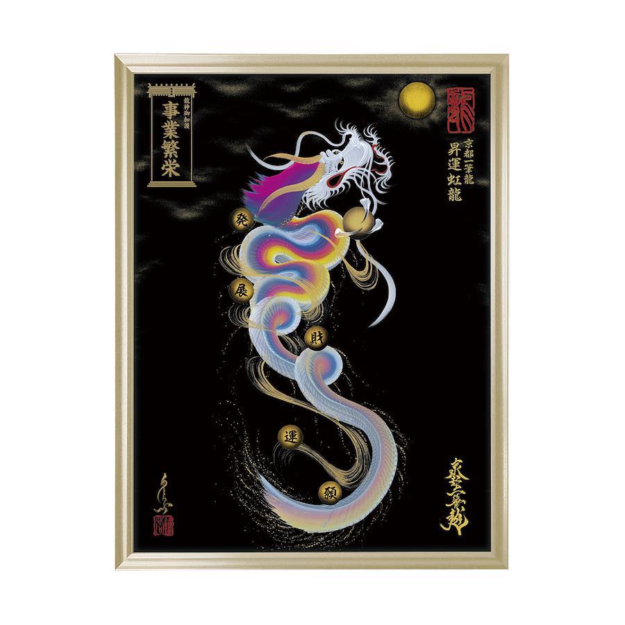 【商品の特徴】・京都一筆龍描画の種類/色彩は【26種】よりお選びいただけます<昇運龍14種(双龍5種/1体龍9種)> <守護龍10種(双龍2種/1体龍8種)> <縁結び龍2種(双龍2種)>・『京都一筆龍の御加護/御利益の象徴=胴体部分を一切途切れさせず一筆で描く動画』のQRコード印字ステッカー(2色/4サイズ)を同封お納めいたしております・描画に記載可能なお願い事は6種のご祈願内容より御選定いただけます心願成就/事業繁栄/金運上昇/健康祈願/家内安全/良縁成就・国内生産の高級額縁(デッサン額)を使用。額縁の色/機能は7種よりお選びいただけます。・龍の眼に光を宿し生気を吹き込む『龍の瞳(ラインストーン)』加工・京都一筆龍絵師手島啓輔署名、落款入り・御贈答のご利用も多く、懇切丁寧な包装