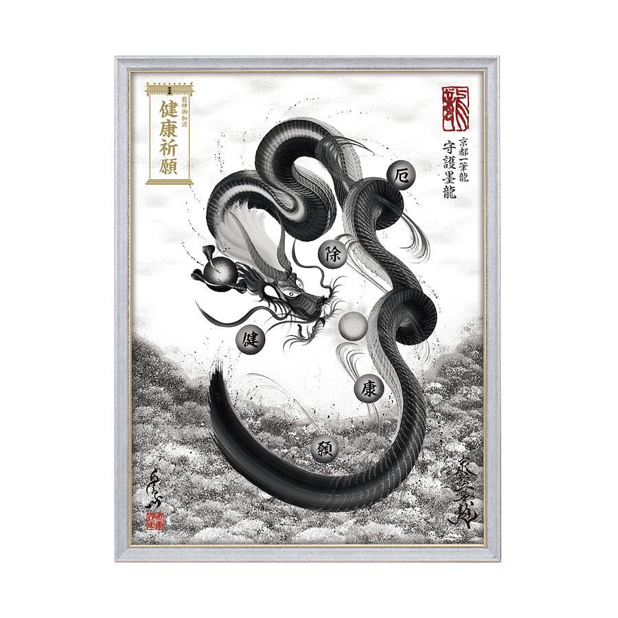 【商品の特徴】・京都一筆龍描画の種類/色彩は【26種】よりお選びいただけます<昇運龍14種(双龍5種/1体龍9種)> <守護龍10種(双龍2種/1体龍8種)> <縁結び龍2種(双龍2種)>・『京都一筆龍の御加護/御利益の象徴=胴体部分を一切途切れさせず一筆で描く動画』のQRコード印字ステッカー(2色/4サイズ)を同封お納めいたしております・描画に記載可能なお願い事は6種のご祈願内容より御選定いただけます心願成就/事業繁栄/金運上昇/健康祈願/家内安全/良縁成就・国内生産の高級額縁(デッサン額)を使用。額縁の色/機能は7種よりお選びいただけます。・龍の眼に光を宿し生気を吹き込む『龍の瞳(ラインストーン)』加工・京都一筆龍絵師手島啓輔署名、落款入り・御贈答のご利用も多く、懇切丁寧な包装