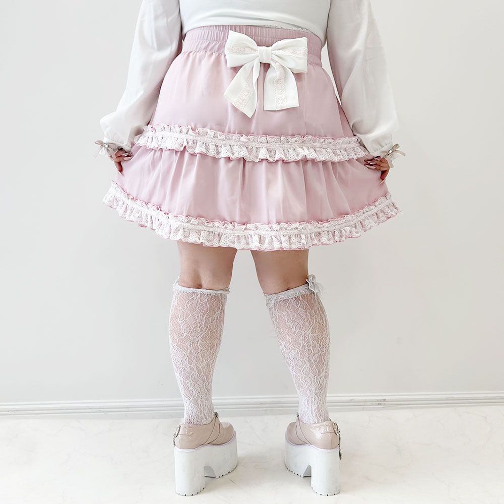 はしごレースがポイントの甘めのティアードスカート新登場?【デザイン】はしごレースがポイントの甘かわスカートウエスト部分に2つキラキラハートビジューボタンボリュームがあり、はしごレースがフリルの上に付いてるティアードスカート後ろにははしごレースがついたリボンがついたデザインになっています。【素材】しっかりとした素材になっています。本体に裏地付き、脇ポケット付きです。脇ファスナー、後ウエストゴム付きです。【コーディネート】量産型、甘めのコーデにピッタリのアイテムです。ロリータコーデにも合わせて頂くのもオススメです。《透け感》なし 《生地の厚さ》普通 《裏地》あり 《伸縮性》ややあり《生産国》中国