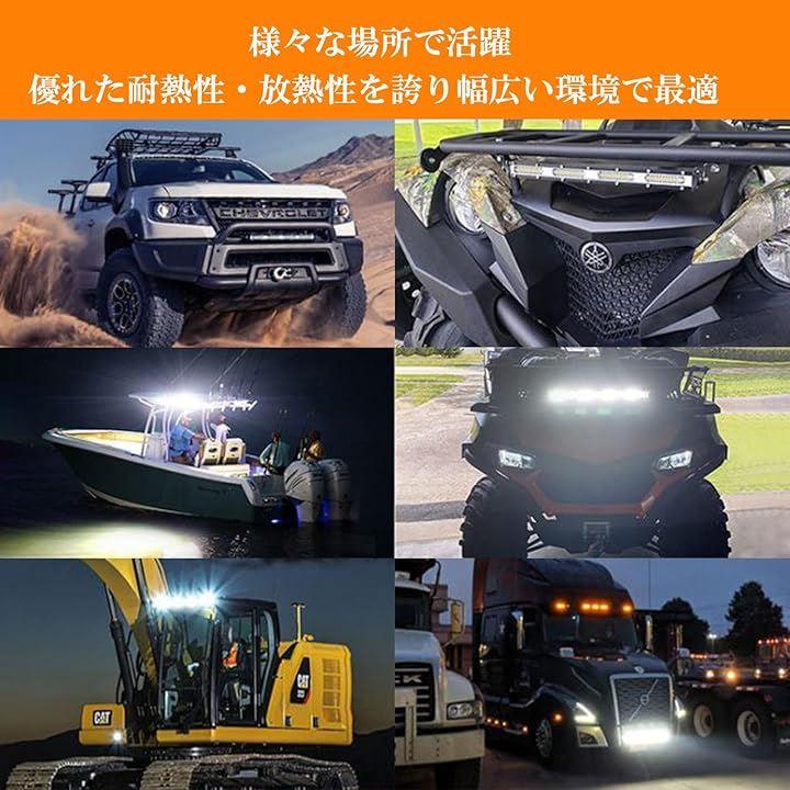 乗用車のライトバーやヘッドライトとしてはもちろん、オフロード車、バイク、フォークリフト、トラック、フォークリフト、工事車両、建設機械、重機、船舶、除雪車、農業機械など幅広い車種、多彩なワーク場面で使えます。
