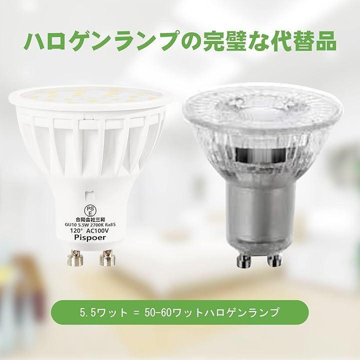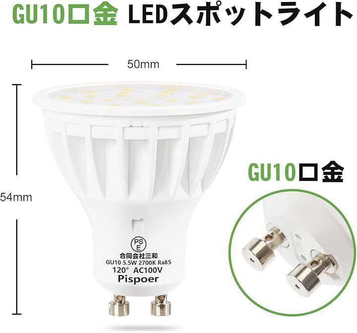 3、GU10 口金LEDランプ、定格電圧AC100V、全光束600lm、ビーム角度 120°、2700K 電球色照明 おしゃれ 照明器具、寸法:Φ50xH54mm *非調光。
