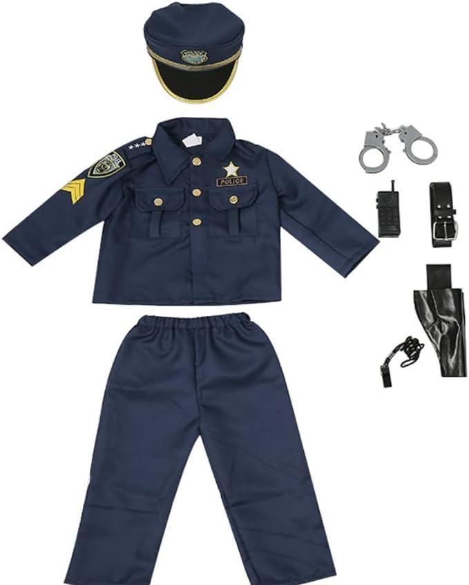 メイン素材:ポリエステル 8点セット:シャツ+パンツ+帽子+ベルト+ホイッスル+ウォーキートーキー+手錠+ホルスター。