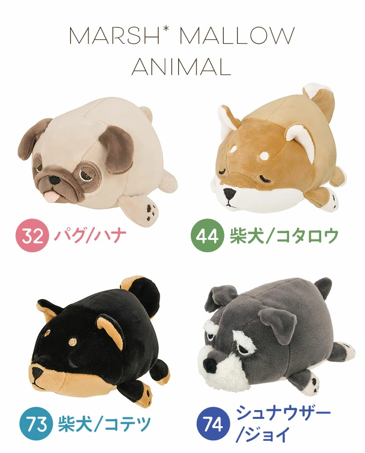 【マスコット】しっとり&もちもちのマシュマロみたいな柔らかさととろけるような触り心地が大人気のマシュマロアニマルズシリーズ。シリーズで集めたくなるサイズ感のマスコット。くたっと力の抜けたシルエットと表情を見ているだけで日々の疲れを緩和してくれそうです♪ご自分にはもちろん、ご家族やお友達へのプレゼントにもオススメです。