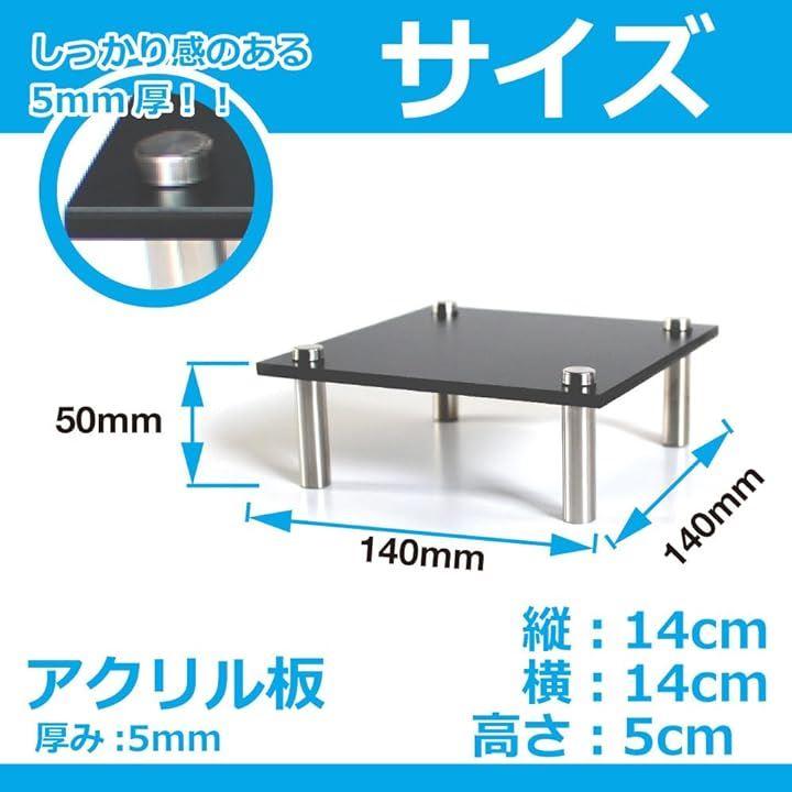 「アクリル板」つや消しマットブラック / 厚み5mm「サイズ」縦14 x 横 14 x 高さ5 cm (脚を含めた全高:5.4cm)「組立式」脚を取り付けるだけ。