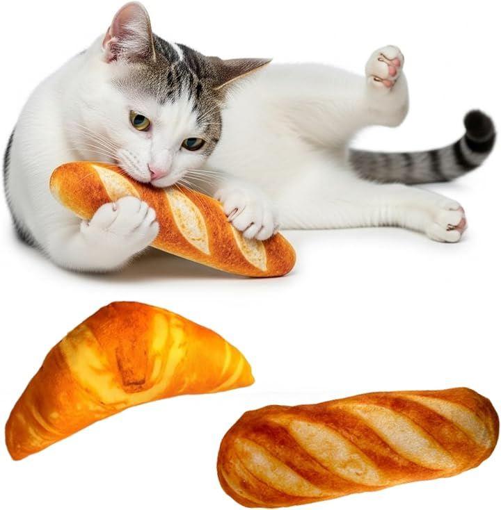 猫ちゃんのストレス発散にぴったりな、パンの形をしたぬいぐるみおもちゃです。