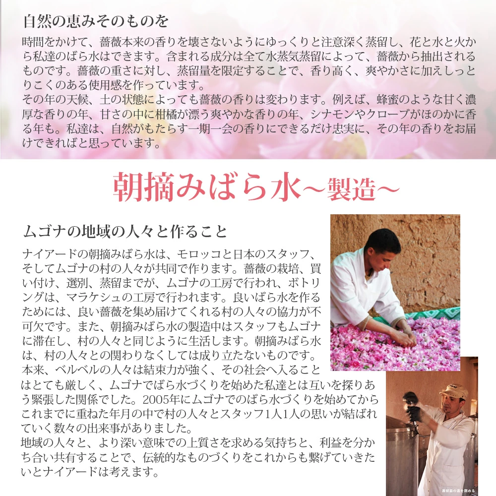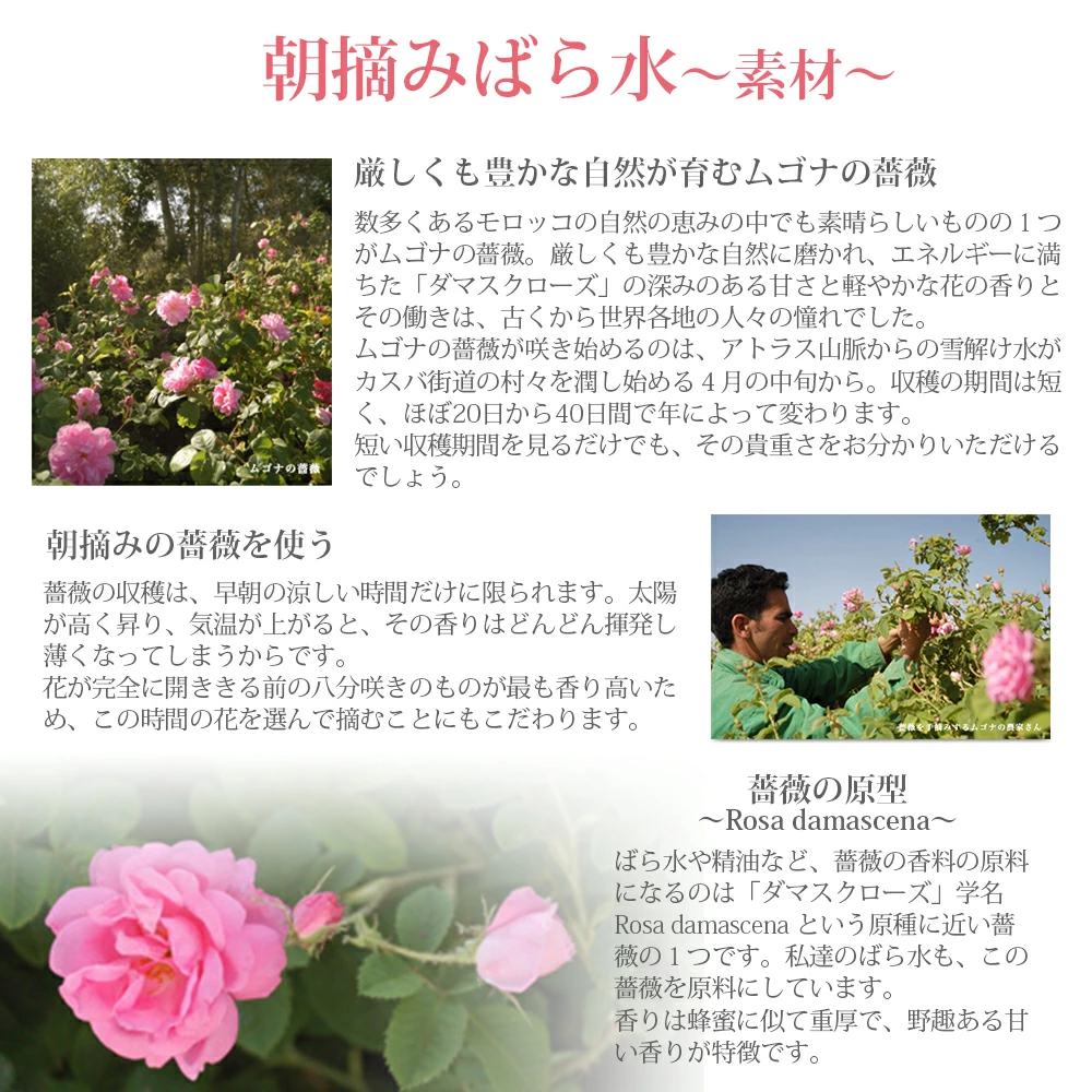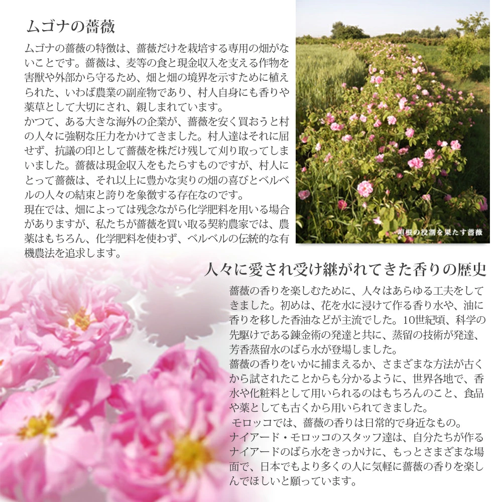 - 全成分 -バラの芳香蒸留水 (ばら水) シトロネロール、シトラール、オイゲノール、ローズオキサイド、カルボン酸、フェネチルアルコール