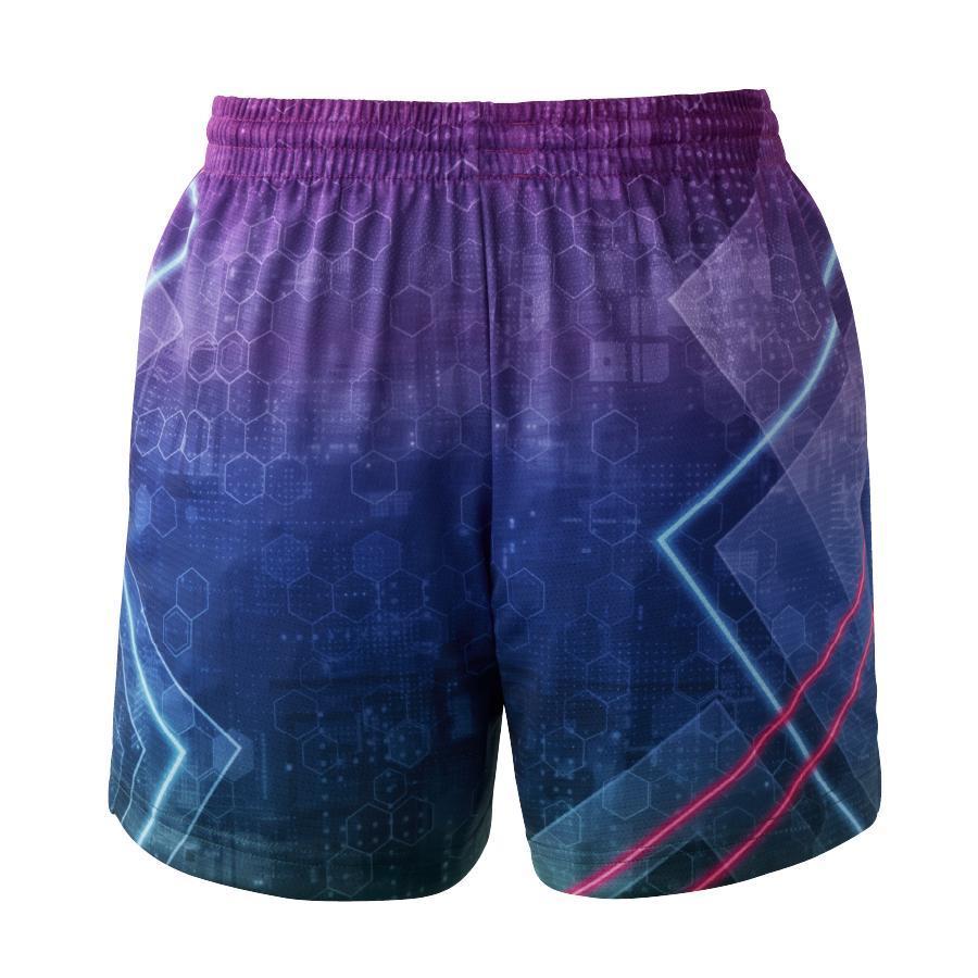 近未来を想像させるネオンサイン×サイバー風デザインには、自分の思い描いた姿になれるように!という想いを込めました。発色性がよく、光沢感のあるブライトドット素材を採用。サラっとした肌触りと伸縮性もあり、着心地抜群です。ラウンドタイプの裾でスマート見え効果!
