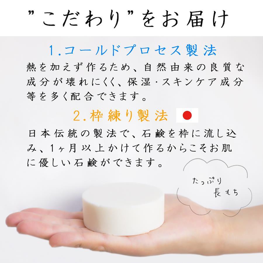 ●保湿成分を多く含んだ石鹸ですので、水切りをよくし、高温多湿や直射日光を避け、乳幼児の手の届かない所で保管してください。