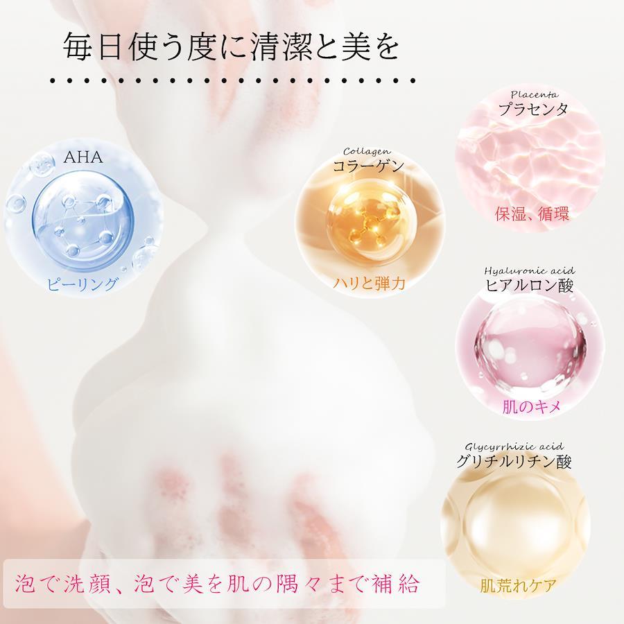 ●洗顔 と ピーリング と スキンケア でつるつるすべすべの肌へ!お肌への 摩擦 等の負担が少ない濃密泡による洗顔とピーリングとスキンケアが同時にできます。●毛穴 角質 黒ずみ くすみ しみ いちご鼻 等が気になる方におススメ!aha を高配合(8%)しており、マイルドでありながらしっかりした ピーリング を実感できます。●お肌の ハリ や 弾力 、キメ 、肌荒れ 対策等のスキンケア 成分として プラセンタ , コラーゲン, ヒアルロン酸 Na, グリチルリチン酸 2Kを配合しております。●泡パック も可能です。パックしながら洗顔とピーリング、スキンケアが行えるため、大変便利です。●酸化防止剤 , 着色剤 , 合成香料 が 無添加。伝統的な手作り製法を採用しており、自然由来のスキンケア成分を豊富に配合されております。●容量:100g (毎日お使いいただいても2ヶ月以上使用できます)MADE IN JAPAN