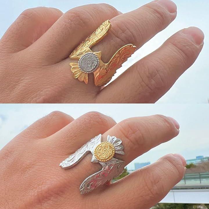 存在感ありでインパクト抜群。 イーグルxコインをモチーフにしたハワイアンリングです。