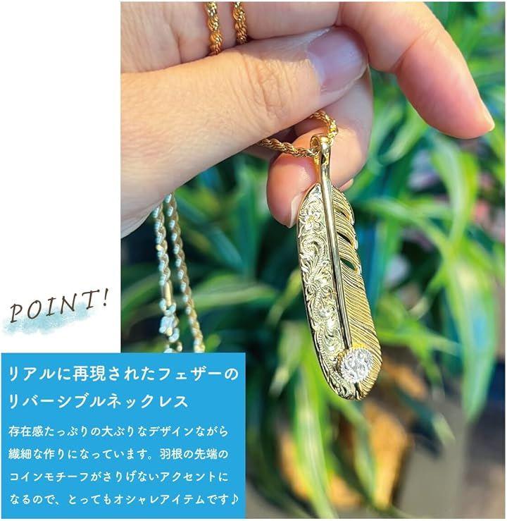フェザーの先端にはコインモチーフがさりげなくほどこされ、 リバーシブルで使える2Wayデザインになっています。