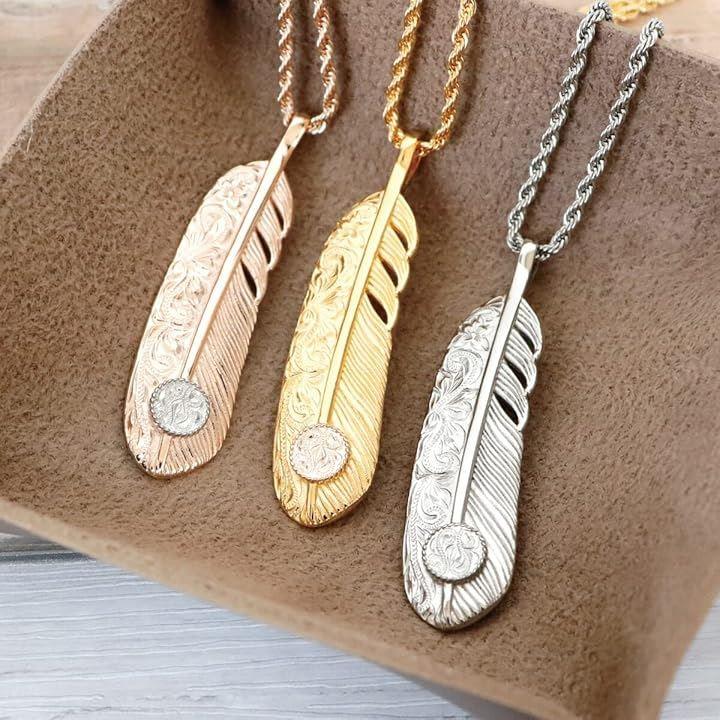 リアルに再現されたフェザーがモチーフの大ぶりなネックレス。