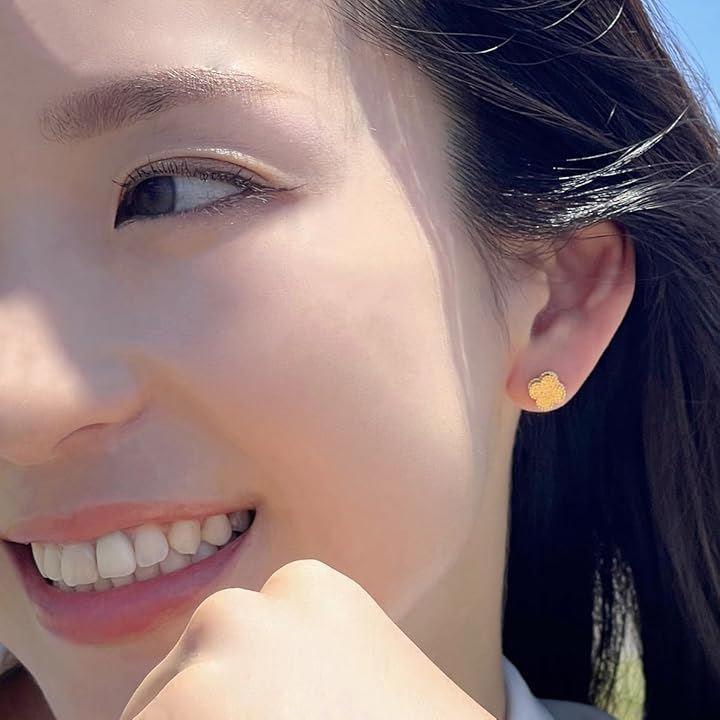 人気のハワイアン柄を贅沢にほどこした フラワー型の小さなピアスです。
