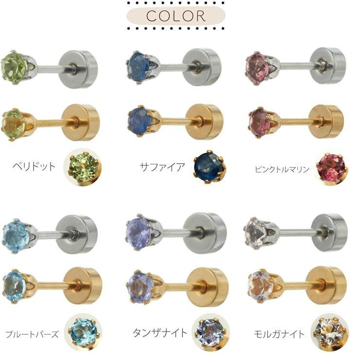 素材 サージカルステンレス製 ガーネット、アメジスト、アクアマリン、エメラルド ブルームーンストーン、ルビー、ペリドット、サファイア ピンクトルマリン、ブルートパーズ、タンザナイト、モルガナイト