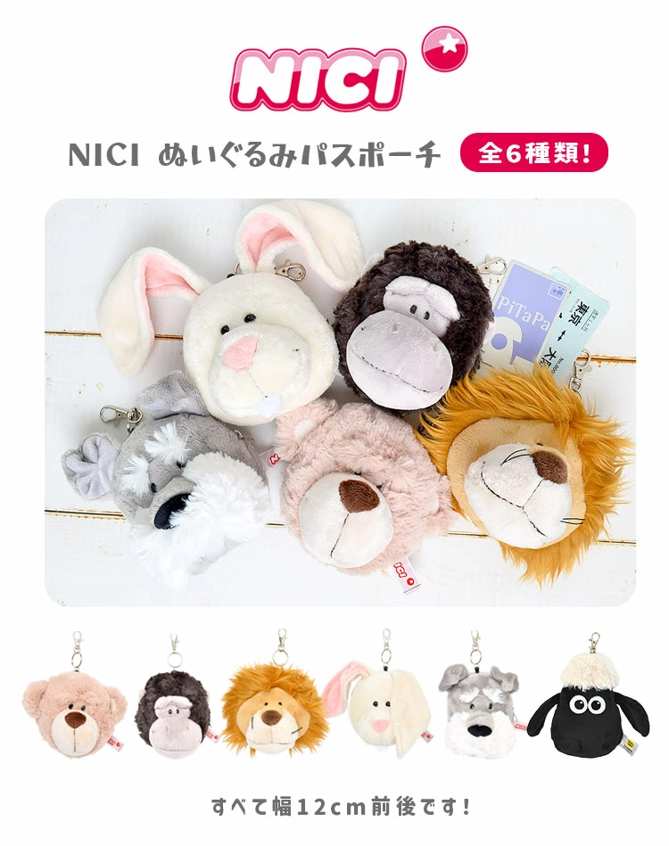 【パスケース】nici/ニキ. ドイツのぬいぐるみブランド「nici(ニキ)」。 世界各国で愛されている安全でポップなぬいぐるみは、思わず抱きしめたくなる愛らしいキャラクターたちでいっぱいです。 そんな子供も大人も大好きなニキから、ぬいぐるみパスケースが登場!動物好き、ぬいぐるみ好きにはたまらないフワフワ、モフモフの可愛いぬいぐるみパスケースです。 定期券やicカードを入れるクリアポケットと、 小銭入れやカードケース、小物入れとして使える ファスナーポケット付き!カバンにつけたままタッチできるリールも付いてとっても便利です♪