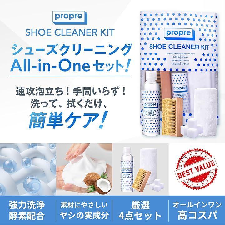 「セット内容」オリジナルクリーナー(リキッドタイプ120ml)、豚毛ブラシ、マイクロファイバークロス、メラミンスポンジx4個