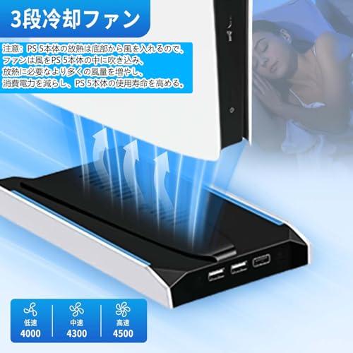 Compatible Models: PS5 Pro / 2025 New Specifications: Vertical stand with cooling fan, an anti-slip mat and safety screw. It can be safely connected to the new PS 5 console for safety and balance. Compatible Models: PS5 Pro / 2025 New Specifications: Vertical stand with cooling fan, an anti-slip mat and safety screw. It can be safely connected to the new PS 5 console for safety and balance 【Ultra High Efficiency Fan Cooling System】This PS 5 slim cooling fan is equipped with a powerful cooling fan system which can keep your PS 5 slim console cool all the time to avoid overheating during long games. 3 Speed Adjustable Wind Speeds: Adjust the air volume with the touch button. 1 level: Orange signal lighting, minimum wind speed, slow heat dissipation, 2 levels: Blue signal lighting, wind speed, etc., heat dissipation acceleration, 3 levels: Green signal lighting, super heat dissipation, step adjustment is suitable for different game conditions, reducing power consumption of PS5 host [Luxurious RGB Lighting] RGB color light comes in 8 colors: Red, Blue, Green, White, Yellow, Purple, and Pink. Set 8 breathing modes and 2 multi-color cycle modes with one click. Equipped with breathing RGB light, you can enjoy a more interesting gaming experience Stability: Made of high quality and thick PVC material, it does not soften at high temperatures, and has a very high hardness, and the ring type openwork design does not affect the heat dissipation of the body, making it very convenient to use. Perfect for placing on TV desktop or cabinet shelves to maximize game space! Quality Assurance: Our products have undergone strict inspection from production to delivery. Use with confidence. If the unused product is damaged or dirty due to delivery or other reasons, please contact us (#lf)(#lf)(#lf)商品購入前に、ストア紹介ページをご確認ください。