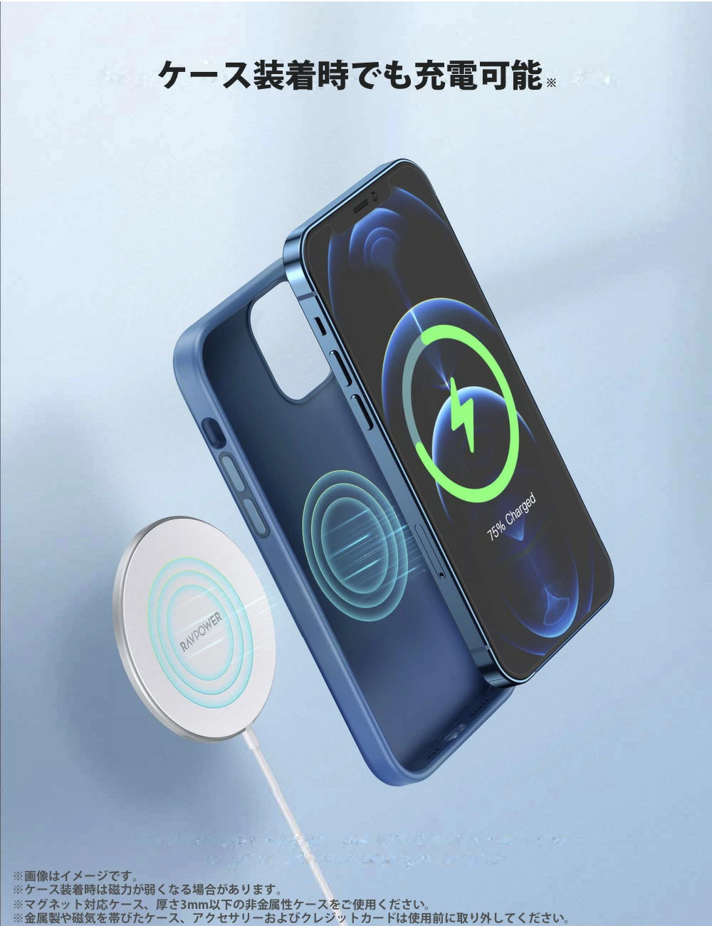 MagSafe対応スマートフォンに最適なマグネット式ワイヤレス充電器です。