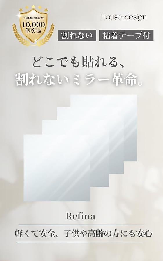 「スペース問題を解決。」 「部屋が狭くて全身鏡を置く場所がない…」そんなお悩みを解決するために生まれたのが、House+designの「どこでも貼れる割れない鏡」。