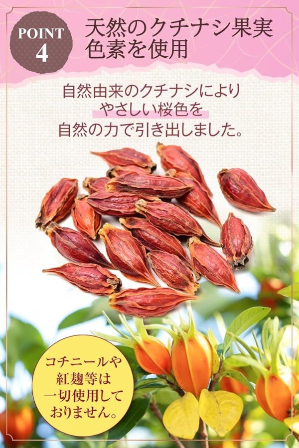 xxクチナシの自然な力で、美しい桜色を実現 ・淡い紅色が透けてきれい。