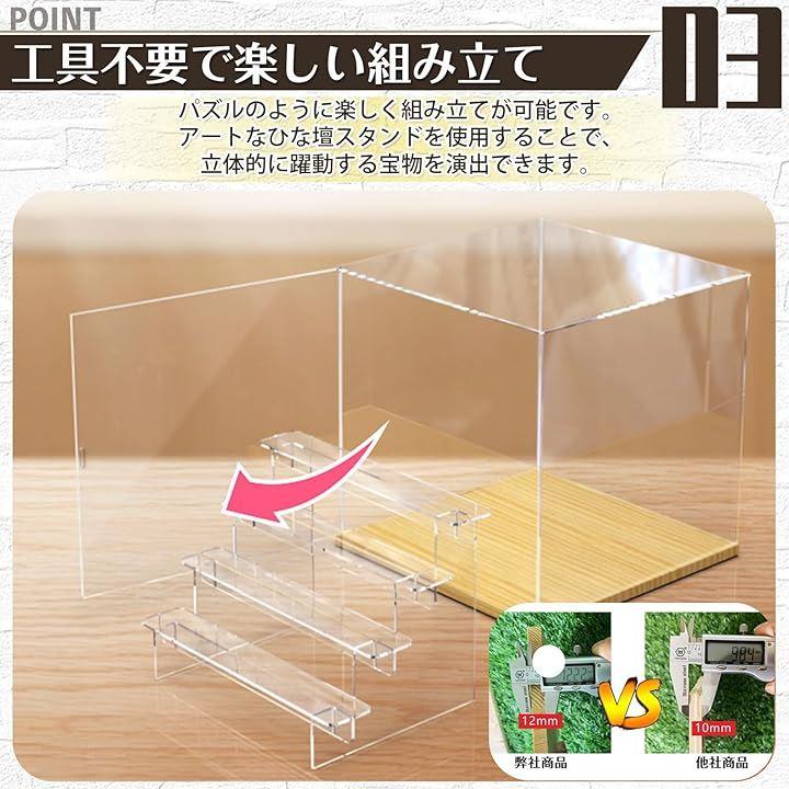 「商品仕様」サイズ:幅32cmx奥行32cmx高さ29.2cm(透明5段)素材:天井板:アクリル板 / 側面板(透明):アクリル板 /サイドパーツ:アクリル板 /台座・ひな壇:アクリル板/用途:フィギュアケース コレクションケース アクリルケース 模型ケース ディスプレイケース 人形ケース 展示用ケース。