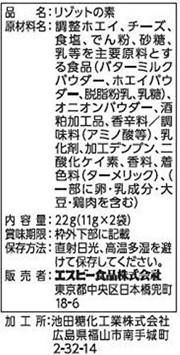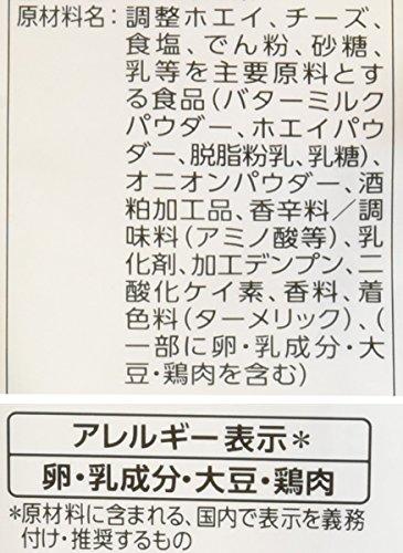 調整ホエイ、チーズ、食塩、でん粉、砂糖、乳等を主要原料とする食品(バターミルクパウダー、ホエイパウダー、脱脂粉乳、乳糖)、オニオンパウダー、酒粕加工品、香辛料/調味料(アミノ酸等)、乳化剤、加工デンプン、二酸化ケイ素、香料、着色料(ターメリック)、(一部に卵・乳成分・大豆・鶏肉を含む)