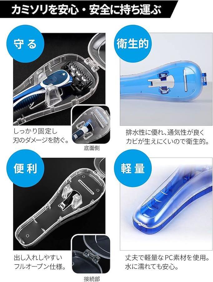 外出時(旅行、出張、キャンプなど)お手持ちのカミソリを携帯できるケースです(ヒゲソリ本体は付属しません)、プラスチックケースで排水用の穴があるので衛生的です。