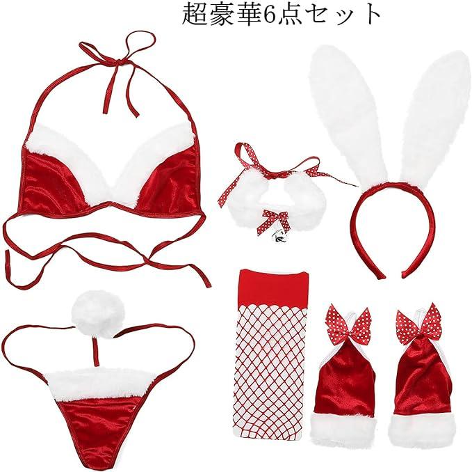 ■商品名SCLYX バニーサンタ6点セット ハイクオリティ バニー耳カチューシャ ファーチョーカー リボン付 ブレスレット Tバック下着 網タイツ付 バニーガール クリスマス コスプレ レディース セクシー 可愛い クリスマスランジェリー サンタランジェリー ベビードール セクシー 過激 露出 誘惑 エロかわいい クリスマスコスチューム レディース サンタコスプレ サンタコスチューム サンタ衣装 女性 レディース 大きいサイズ X'MAS SANTA COS#21199 (タイプーB)