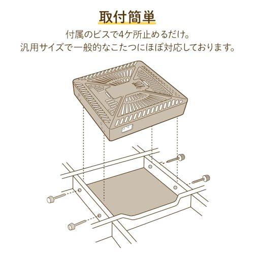 ●汎用サイズ一般的なこたつにほぼ対応しております。現在販売されている一般的なこたつは、29×29cmの取付枠に対応しています。規格化される前の2000年以前に販売された古いこたつは、サイズが異なる場合があるので事前の確認をお願い致します。(ヒーター取付け木枠内サイズ:29×29cm、29×33cm)